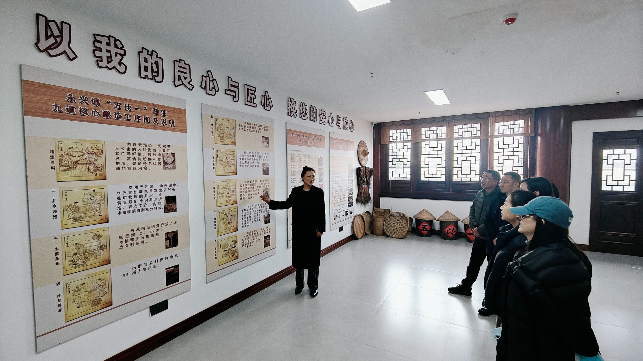 在讲解员的带领下,党员们依次参观了酱园内十万口酱缸和酱油博物馆。大家近距离感受传统酱油酿造工艺的独特魅力,深入了解非遗技艺的传承与发展,并与基地党组织负责人、企业管理层开展座谈,围绕“党建引领企业发展”“传统产业的数字化转型”等话题深入交流。