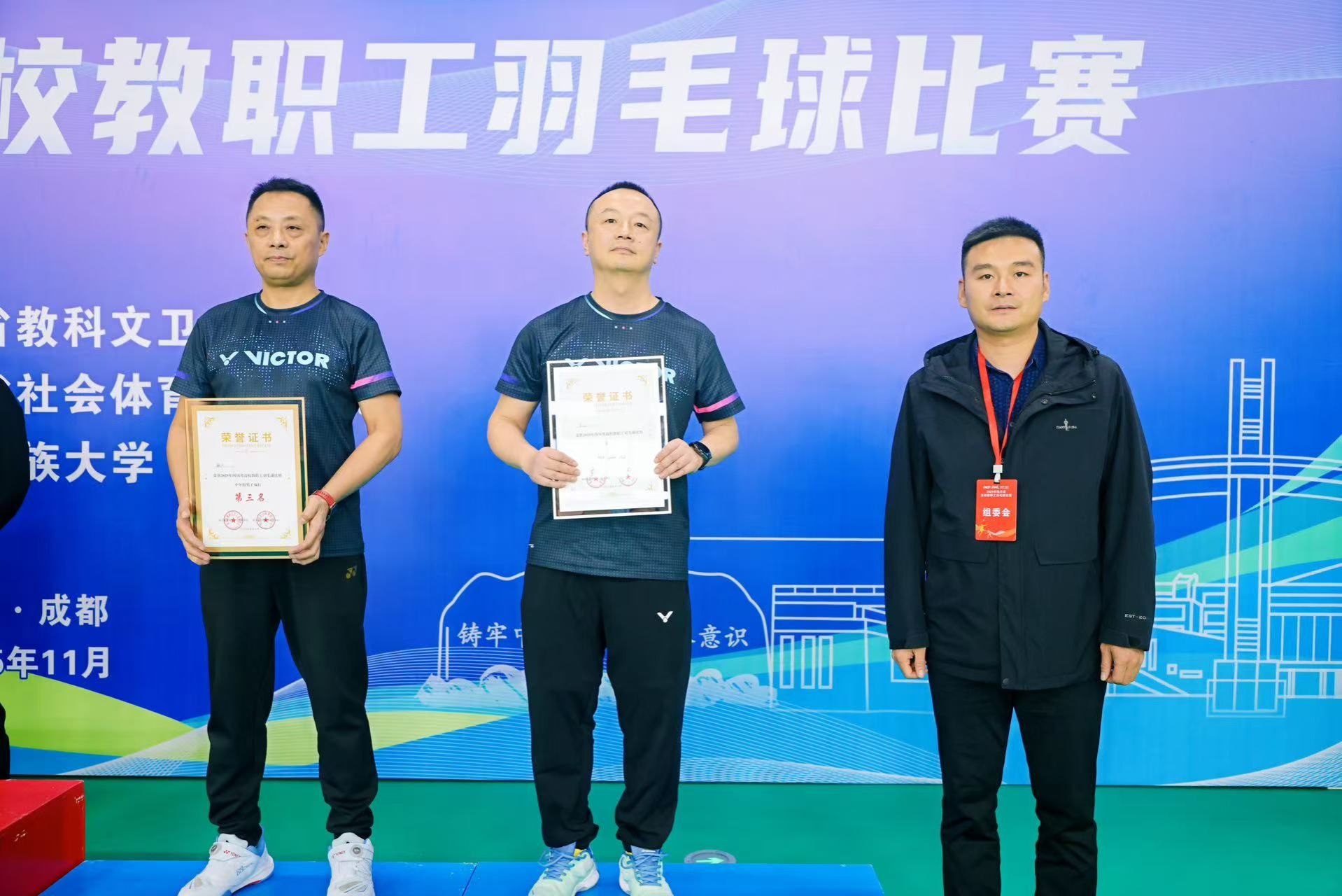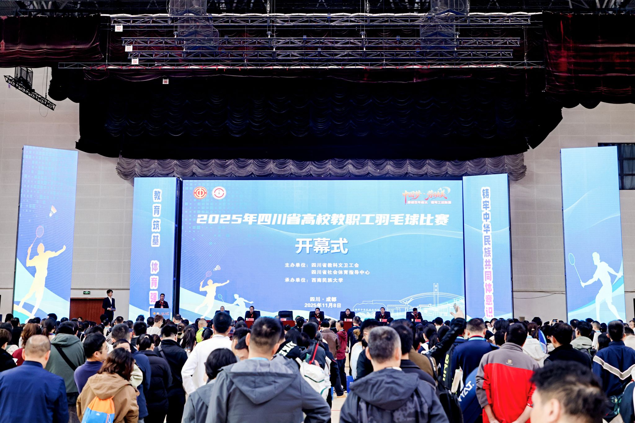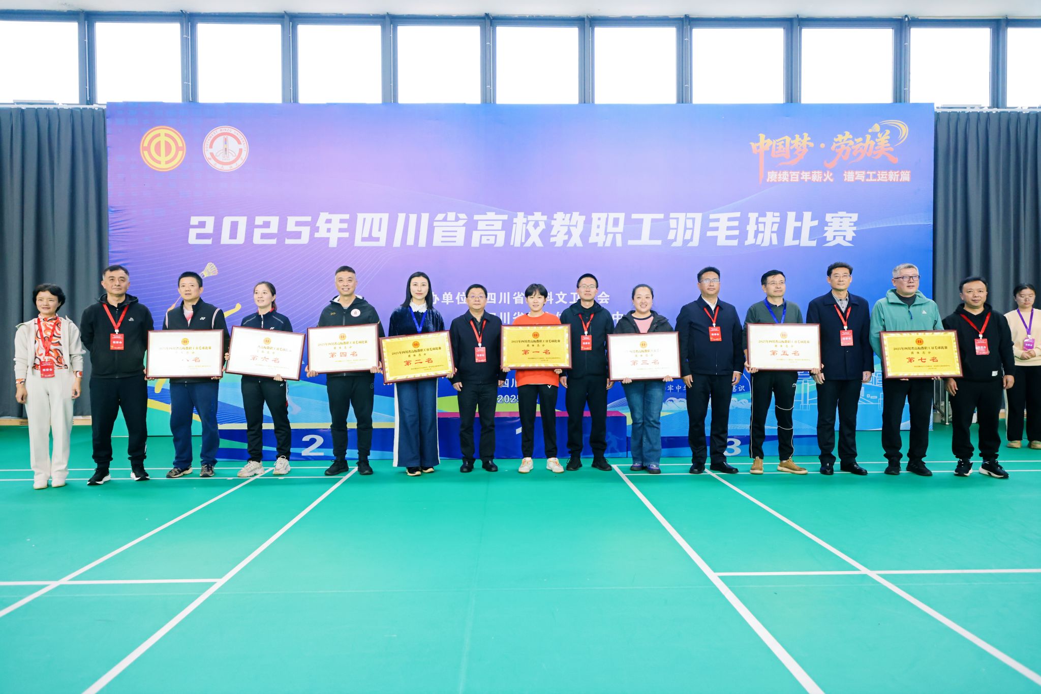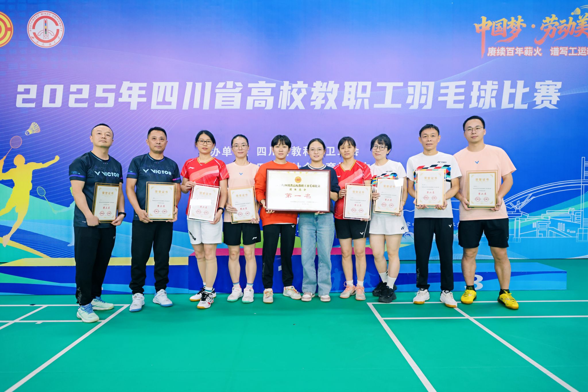 2025年11月8日至9日,由四川省教科文卫工会、四川省社会体育指导中心主办,西南民族大学承办的四川省高校教职工羽毛球比赛在西南民族大学航空港校区火热开赛。我校教职工12人在赛场上奋勇拼搏,最终以绝对优势荣获团体总分第一的优异成绩。