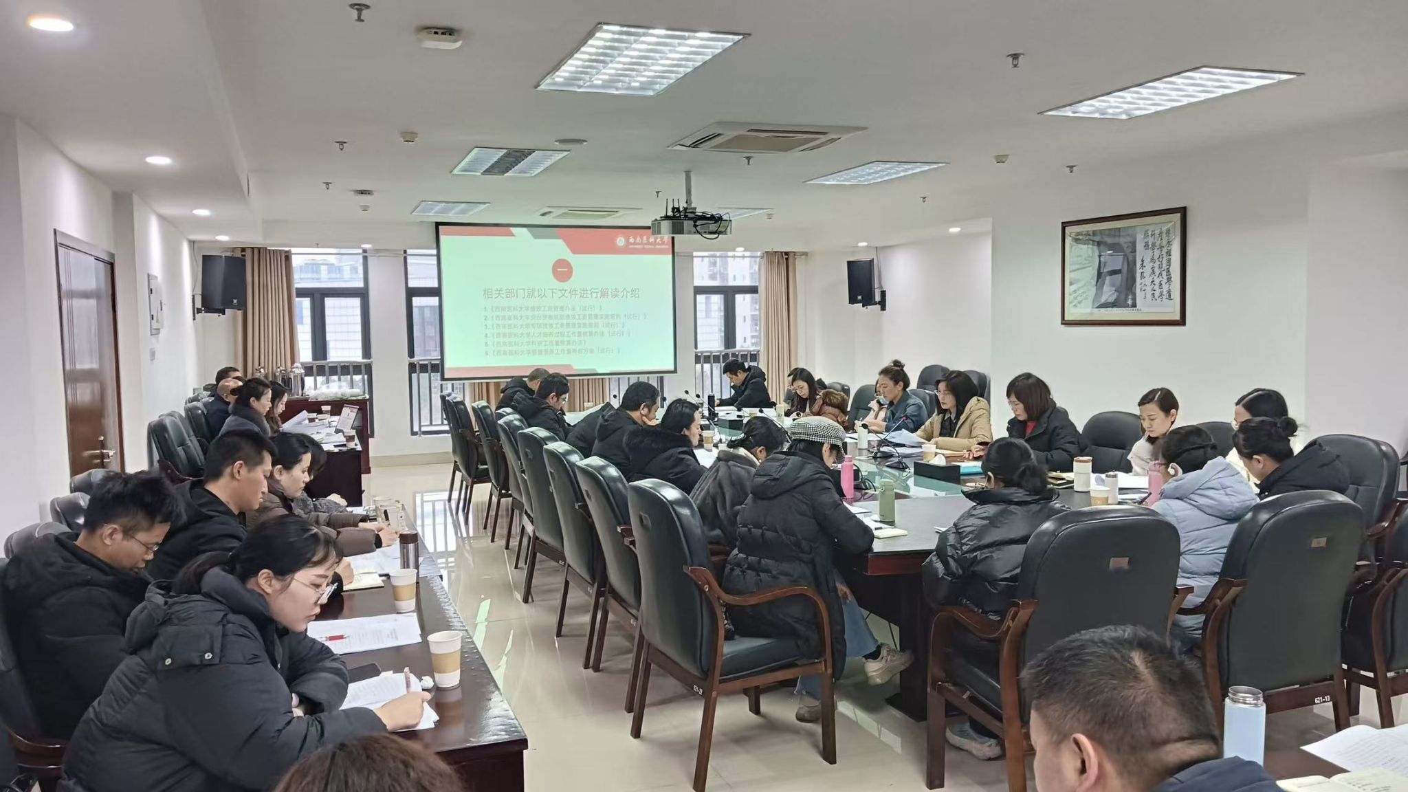 会上,人事处、教务处、科技处、组织部依次就提交会议审议的《西南医科大学绩效工资管理办法(试行)》《突出贡献奖励绩效工资管理实施细则(试行)》《专项绩效工资管理实施细则(试行)》《人才培养过程工作量核算办法(试行)》《科研工作量核算办法》《管理服务工作量考核方案(试行)》6项制度进行解读,并现场回应委员所提问题,对相关条款的设计思路、修改依据作出详细说明。