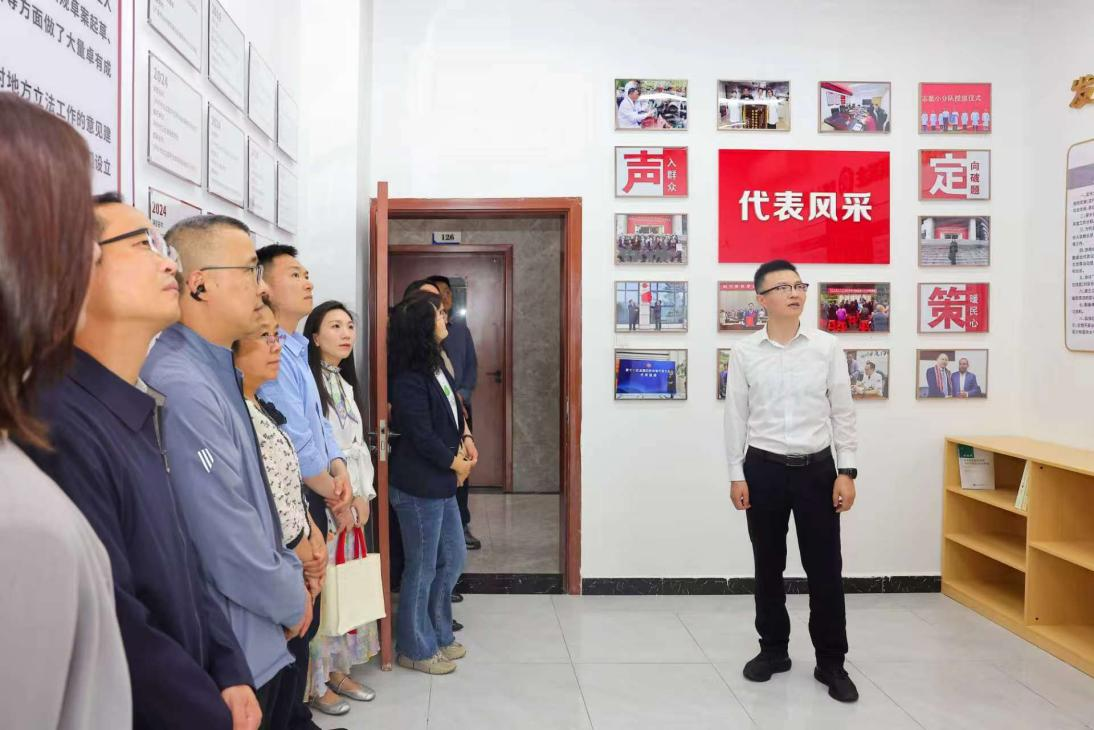 活动中,董伟带领与会人员参观学校人大代表之家,详细介绍人大代表职责使命、人民代表大会制度运行机制等内容,帮助工会干部深化对我国根本政治制度的理解与认识。