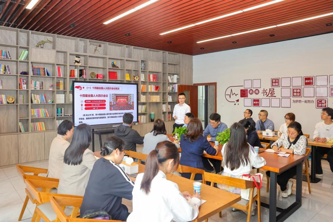 董伟在宣讲中结合自身参会经历与履职实践,系统解读十四届全国人大四次会议主要成果,重点围绕政府工作报告中与高校教职工密切相关的教育发展、医疗健康、人才队伍建设等内容作深入阐释。他分享了履职期间认真审议报告、研读立法资料、扎实开展调研的真实经历,以朴实话语展现人大代表履职尽责的严谨态度与责任担当。